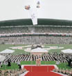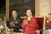 True Parents, Rev. and Mrs. Moon; World Culture and Sports Festival and the Holy Marriage Blessing; Mrs. Moon visiting Dublin being presented with a bouquet by Melanie Kennedy;